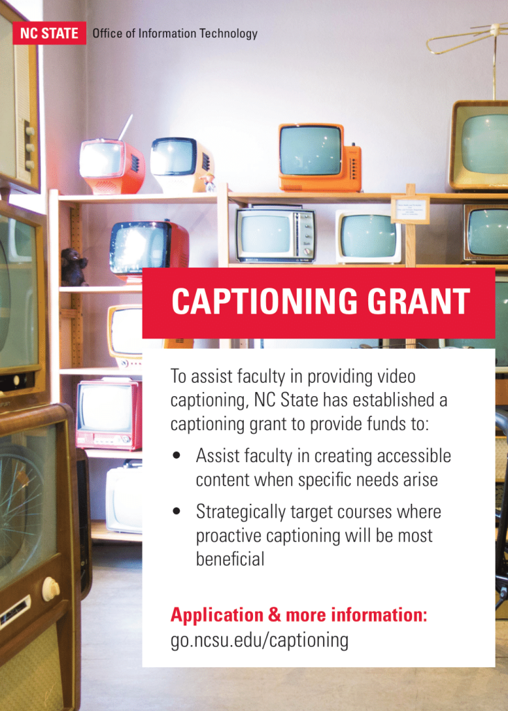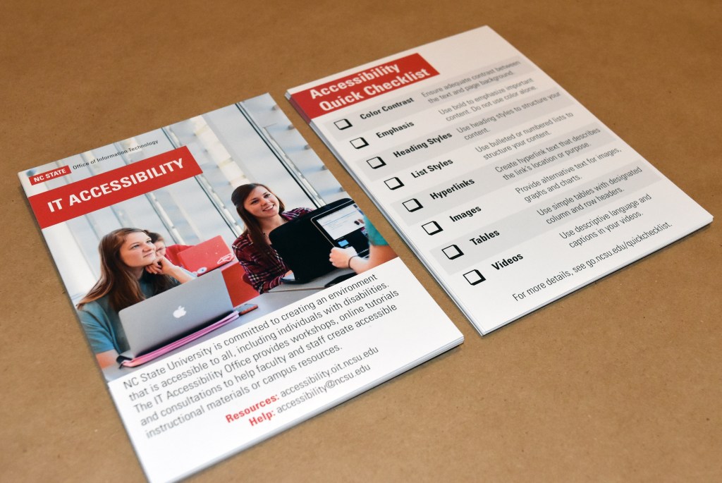 The Office of Information Technology houses NC State’s Digital Accessibility Office. As part of the commitment to advancing equitable access to materials, I helped create outreach and communications pieces, including:
