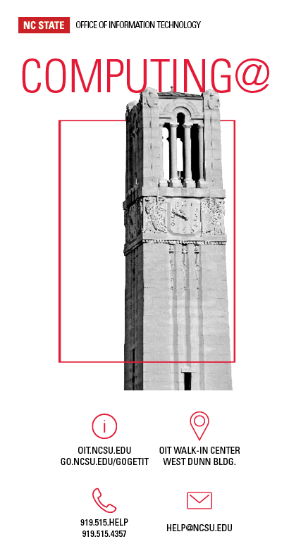 - Full creation of Computing@ NC State print brochure (content, graphics, layout, vendor relationship, delivery)